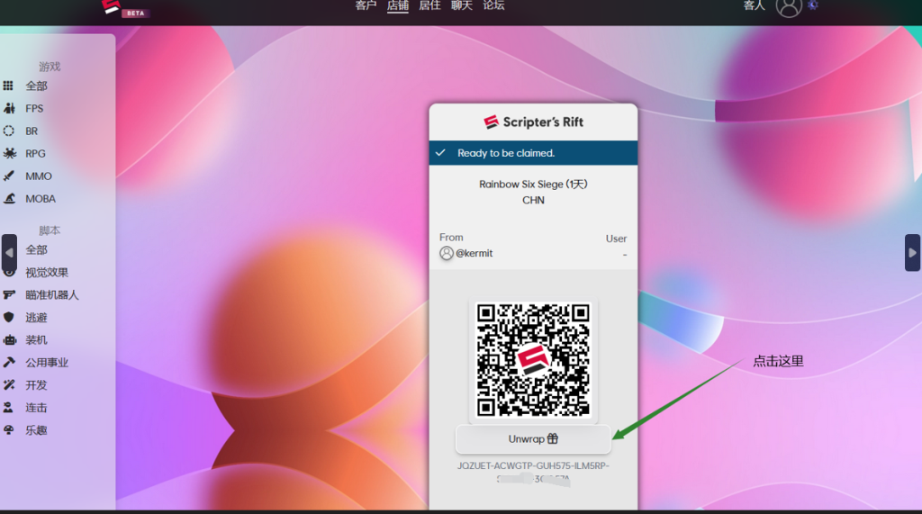 到这里就已经激活了卡号然后打开 https://my.scriptersrift.gg/