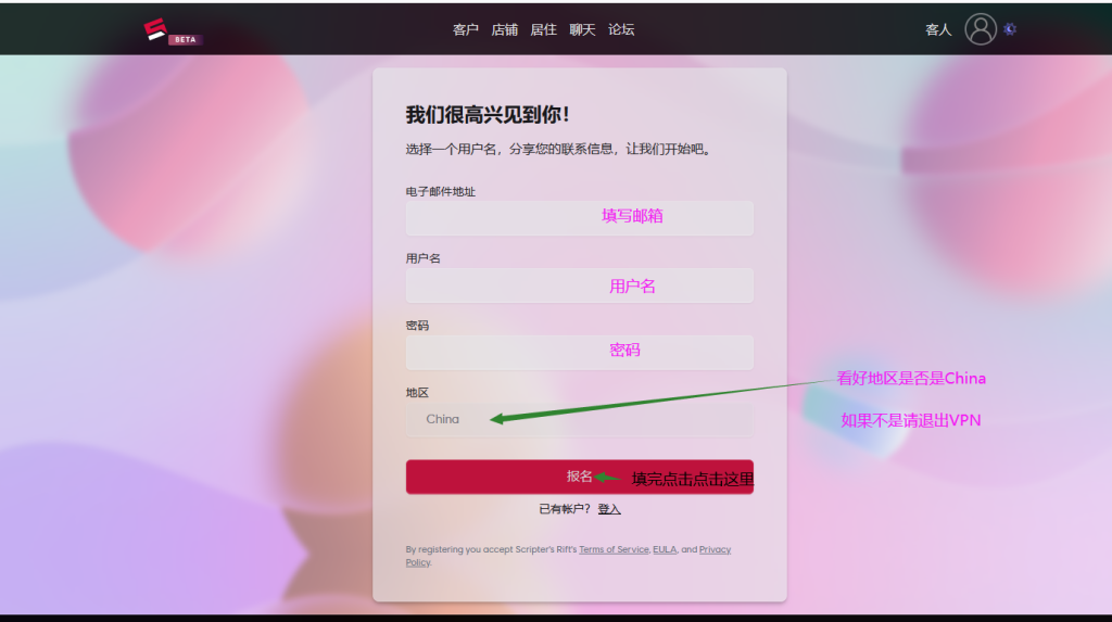 打开网站https://my.scriptersrift.gg/login 按照以下注册完成
